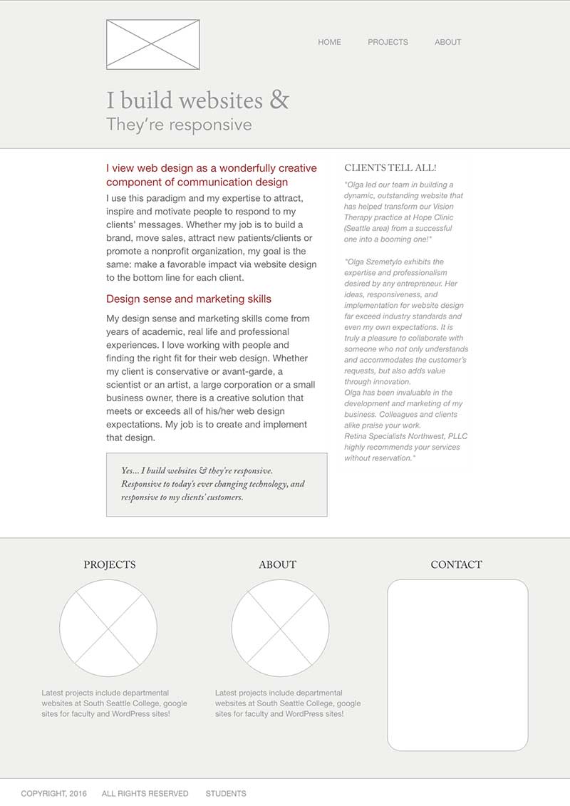 Wireframe for the projects page (created with Wireframe.cc)